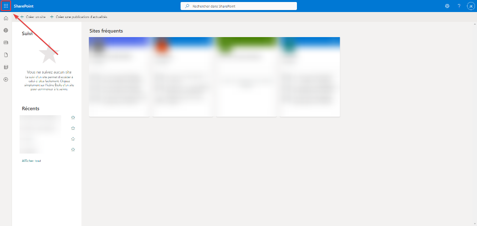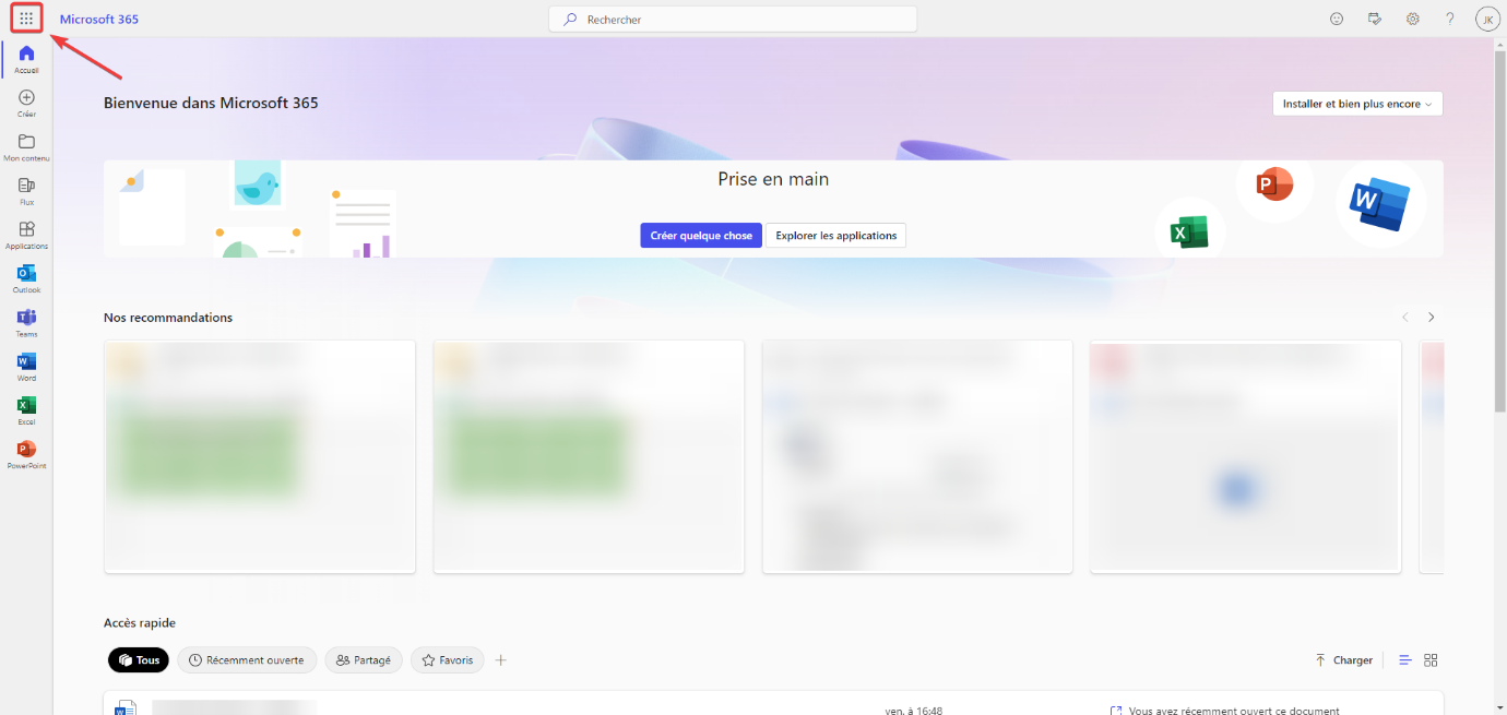 2 – Cliquez sur les petits points dans le coin gauche à côté de « Microsoft 365 ».