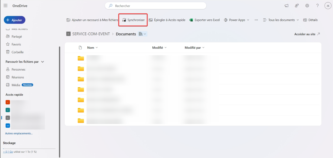 6 – Cliquez sur « Synchroniser » puis « Ouvrir Microsoft OneDrive ».