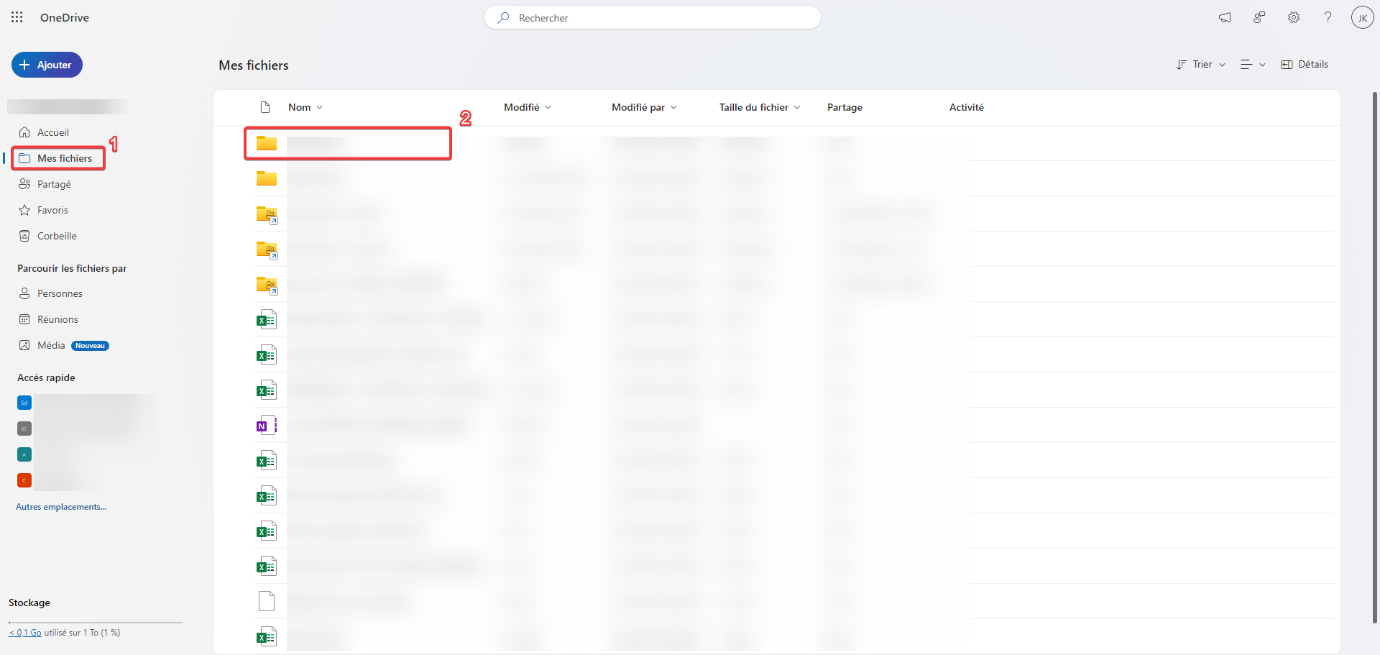 5 – Une fois sur le OneDrive, allez dans la rubrique « Mes Fichiers » puis sélectionnez le(s) dossier(s)/fichier(s) que vous souhaitez synchroniser.