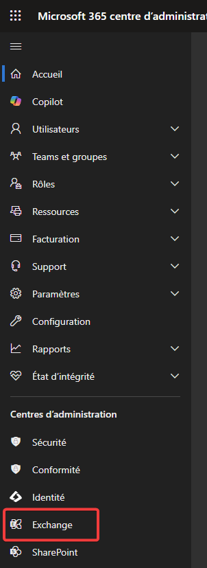 - Si l’option Exchange n'est pas visible, cliquez sur "Afficher tout" en bas du menu de gauche pour afficher toutes les options.