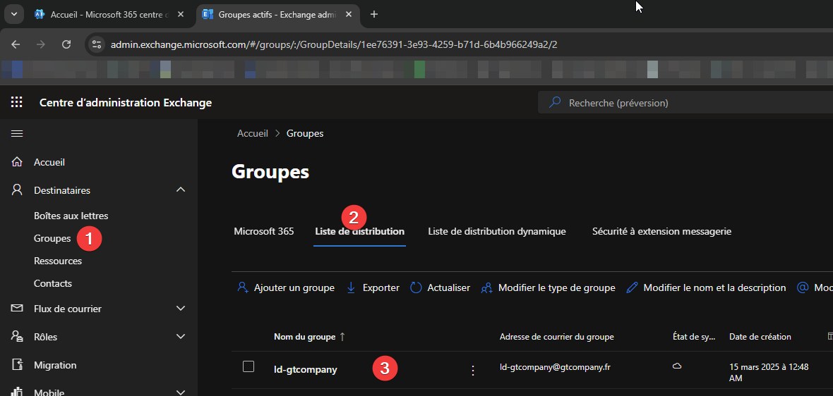 Pour gérer les listes de diffusion, connectez-vous à la console d'administration du client concerné via l'URL suivante :