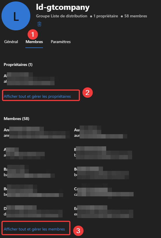 - Modification des membres (destinataires des emails redirigés) : Dans la section Membres.