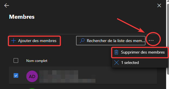 L’interface permet d’ajouter ou de supprimer des membres à la liste.
